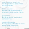 Tranexamic Acid (TXA): Visibly reduces post-acne discoloration to restore your natural skin tone. Niacinamide: Visibly fades the appearance of post-acne marks for a more even skin tone. Vitamin C: Brightens appearance of skin discolorations to reveal a natural, radiant complexion. Helps visibly fade dark spots and dark patches. NeoGlucosamine: A non-acid amino sugar that gently exfoliates to promote skin’s natural turnover process, while also fading the appearance of discoloration, uneven tone and age spots. Formula also contains x: Willowherb Extract and Licorice Root Extract. aqua/water/eau, propanediol, acetyl glucosamine, niacinamide, alcohol denat, tranexamic acid (txa), ascrobyl glucoside, epilobium angustifolium flower/leaf/stem extract, 4-butylresorcinol, glycyrrhiza glabra (licorice) root extract, xanthan gum, sodium bisulfite, sodium hydroxide, caprylyl glycol, disodium edta, chlorphenesin, phenoxyethanol.